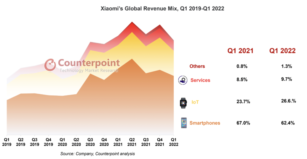 机构:小米 2022 年 Q1 收入同比下滑 4.6%,成智能手机市场动荡信号